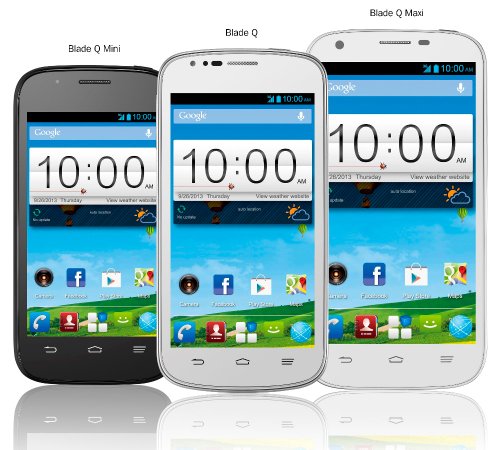 ZTE has announced three new smartphones in blade series for the European Market, the Blade Q-Mini, Maxi and Q. The prices of the handsets are not announced yet, but specs are known. All the smartphones has 1.3GHz dual-core CPU, 1GB of RAM, 5MP rear snapper and runs on Android 4.2 Jelly bean OS. The company has pre loaded Evernote, Dropbox and office suite to all the new handsets.